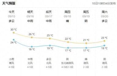 9月19日4时至16时,威海全市平均降水量13.4毫米。汛期、今年以来降水量较同期均偏少。市气象台16时发布天气预报,未来三天威海有雨。